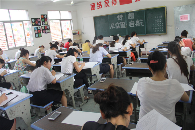 7月14日,准备“礼仪队员”在仙桃市大新路小学参加语文、数学的文化考试。