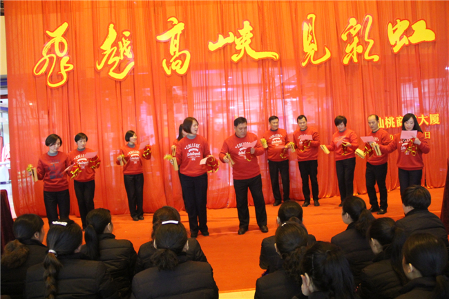 春节前35天贩卖誓师动员大会,这是一场各显神通的较量;也是一个胜者为王的战场;更是一次突破自我的飞越!站在10亿的顶峰,我们定当一鼓作气,飞越高峡,欢迎彩虹,当仁不让的续写光荣的历史,打开一个全新的视野,一览桃花烂漫的明天!