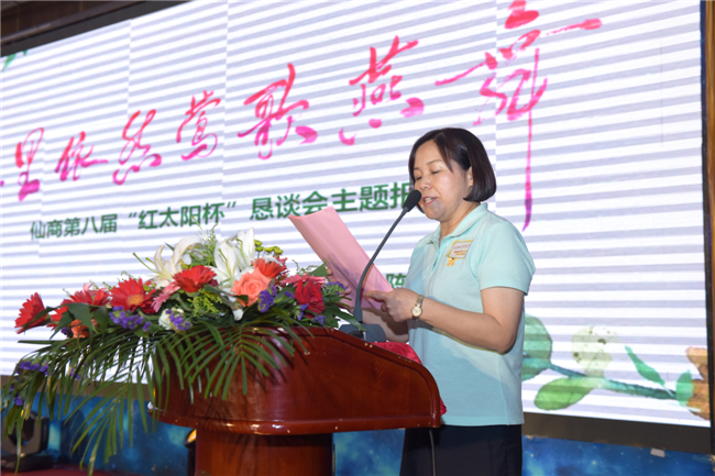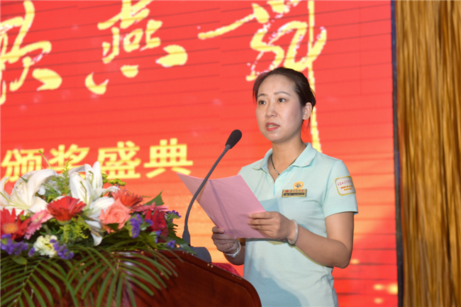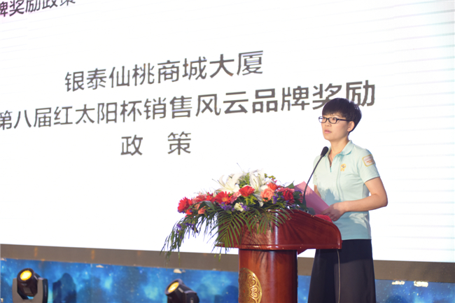 仙商营业管理团队 刘雅萍 宣读第八届“红太阳杯”奖励政策