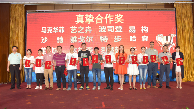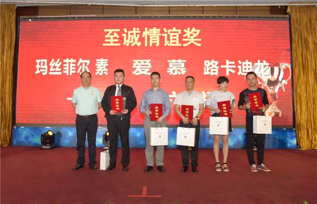 仙商总经理王世兵与获得至诚情谊奖的品牌供给商合影