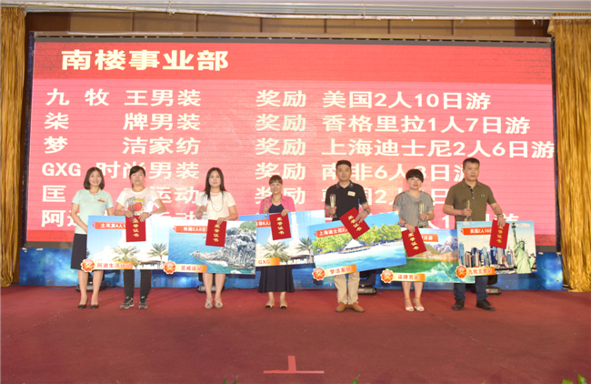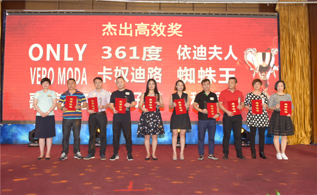 仙商营业部部长王明利与获得卓异高效奖的品牌供给商合影