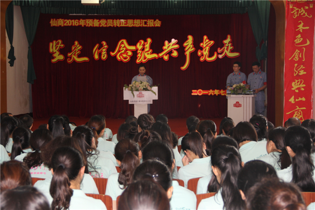 2016年7月26日,仙商在北八楼明理堂召开主题为“坚定信心跟*********走”的准备党员转正思想汇报会。