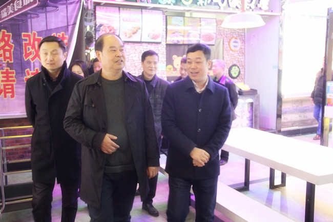 仙商总经理王世兵陪同副市长王永,商务局局长彭本军视察仙商南七楼美食城消防安全工作
