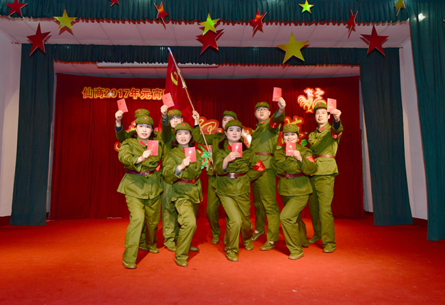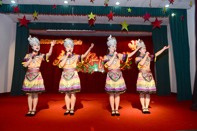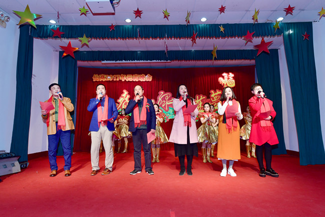 红歌洪亮,舞姿翩翩,仙商100多名演职人员,自编自演了《东方红》《十送红军》《母亲》等14个节目。既有歌舞,也有小品,展示了仙商员工的优秀精神风貌。这些平日坚守三尺柜台或奔走于四方的通俗业务员、营业员,走上舞台也像模像样,不逊于专业演员。