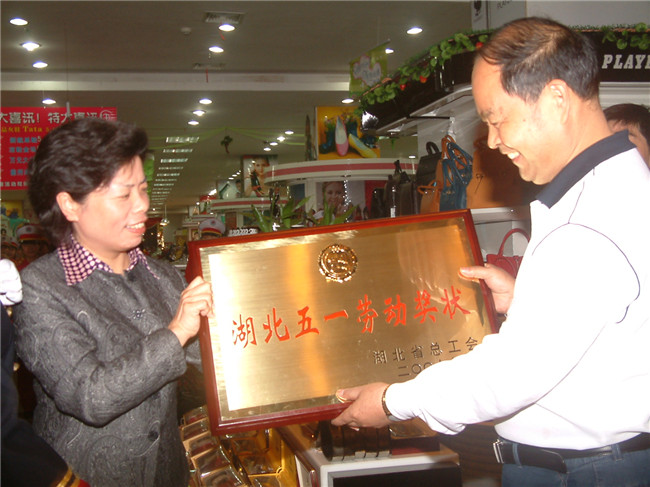 2007-04-30市委常委、市总工会主席王军娥(左)向仙商授牌