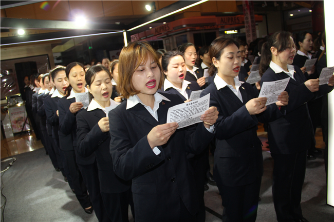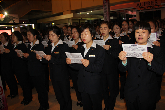 2018年4月5日上午8:00,仙商在北一楼中厅举行“清明节颂歌”运动。(运动由南楼事业部主理)