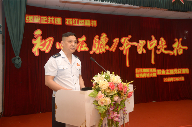 2018年5月28日,仙桃市国税局与仙桃商城大厦联合举办主题为“初心在镰刀斧头中定格”的支部主题党日系列运动。