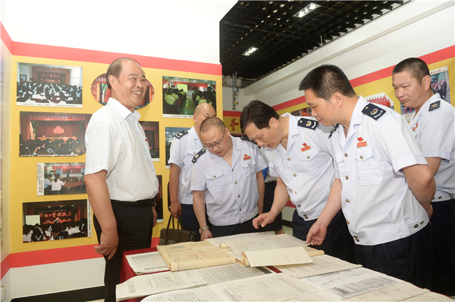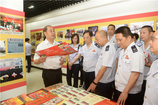 仙商党委书记 王世兵同道与国税局向导及党员参观仙商精神文明楼