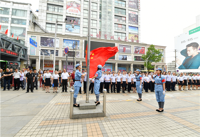 本次运动分为三个环节:观摩仙商西门广场升国旗仪式;参加北八楼明理堂运动;参观仙桃商城大厦精神文明楼。