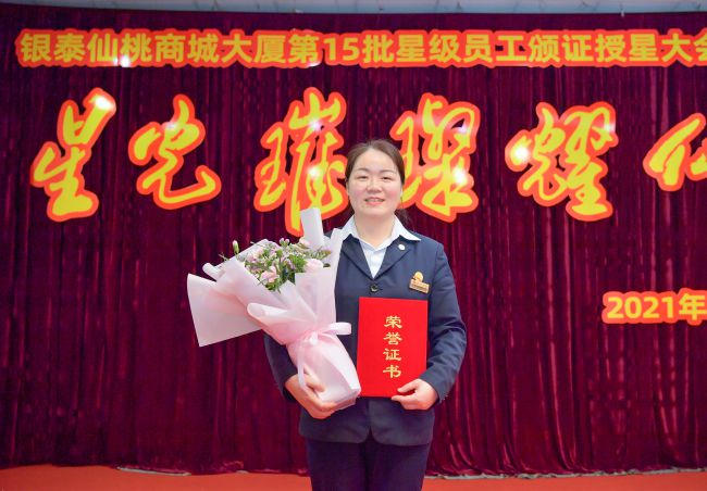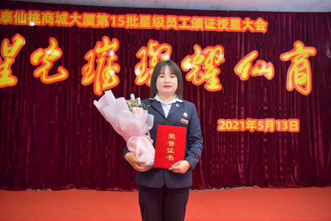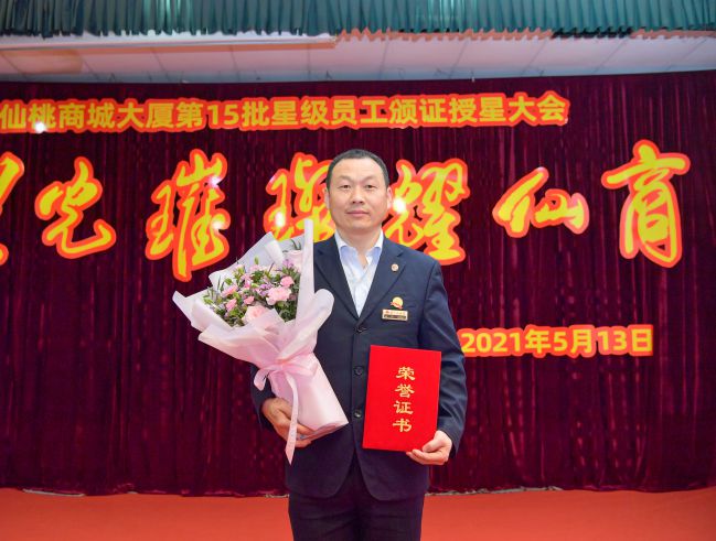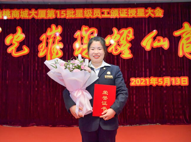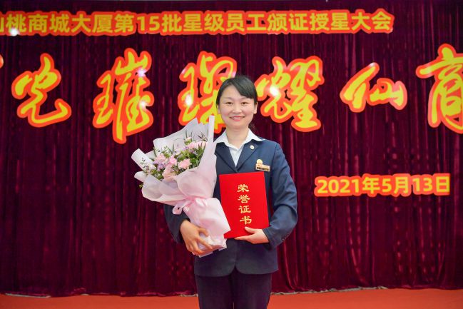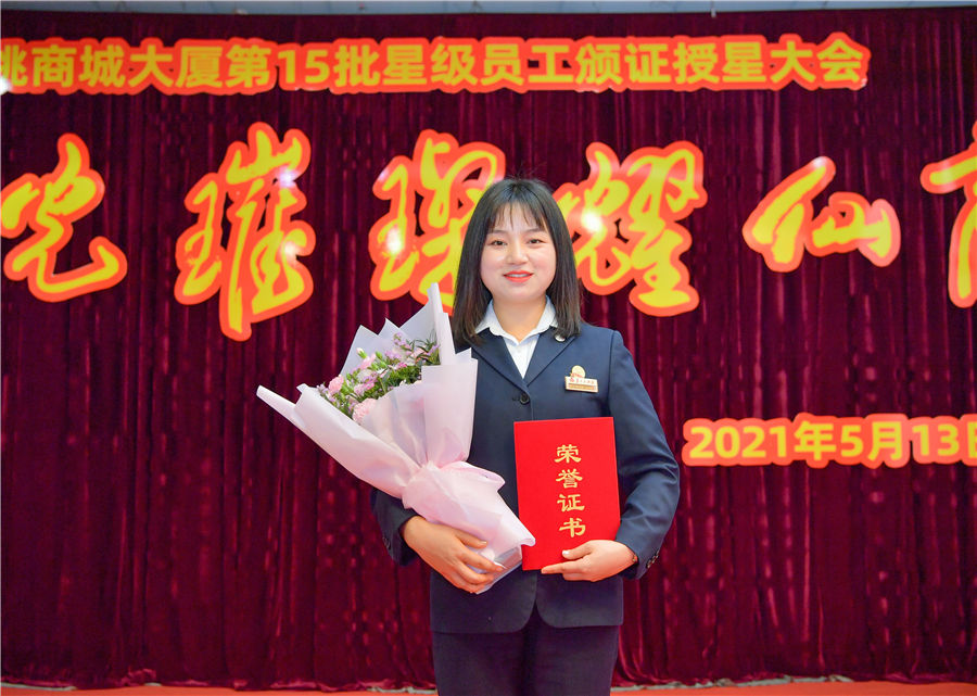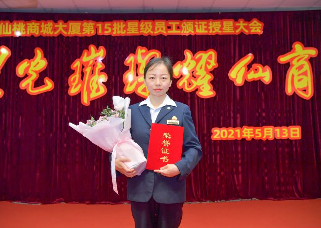 王:在仙商,能够成为一名星级员工是值得骄傲的一件事情,星级员工用青春与热血铸就着仙商奋进的丰碑!