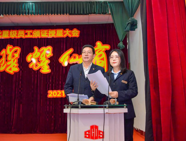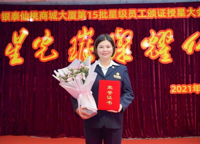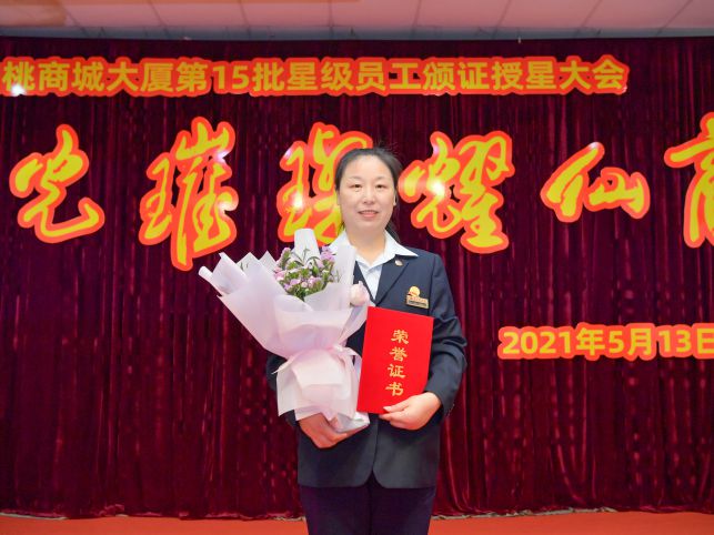 王:这些员工正是我们星级服务的基石,也是企业赓续涌现星级员工的源泉。下面进行第三项议程:请仙商副总 胡丽萍 宣读《授予星级的赞誉决定》。