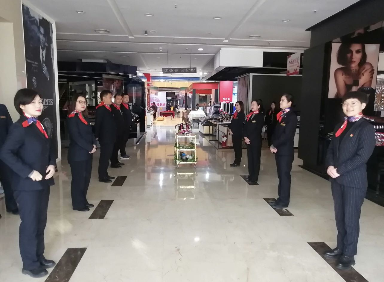 店总刘雅萍(右)带领高层在“双11”恭候顾客的到来