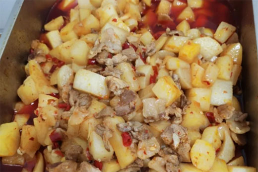 2元可以吃到虾、鸡肉、鱼、蔬菜