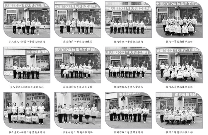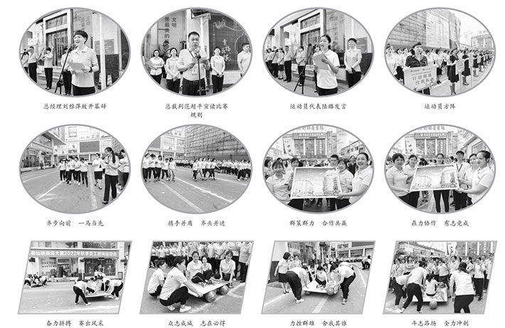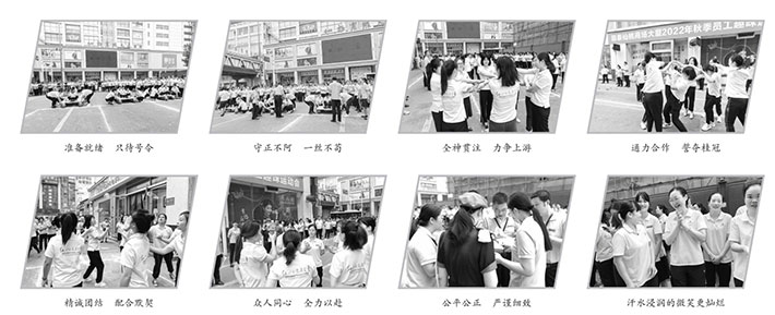2022年8月27-30,仙商2022年秋季员工趣味活动会在西门广场隆重举办,为期四天。参加此次活动会共有14支代表队,四个比赛项目:多人竞足+拼图、滔滔向前、协同作战、拔河比赛;有314名活动员参加比赛,有93人分别摘得冠、亚、季军。此次活动会,不仅发扬了仙商人“连合拼搏”的团队精神,更加显现了仙商人积极向上,乐观进取的风采。现将活动会的精彩画面再次呈现,与读者分享。