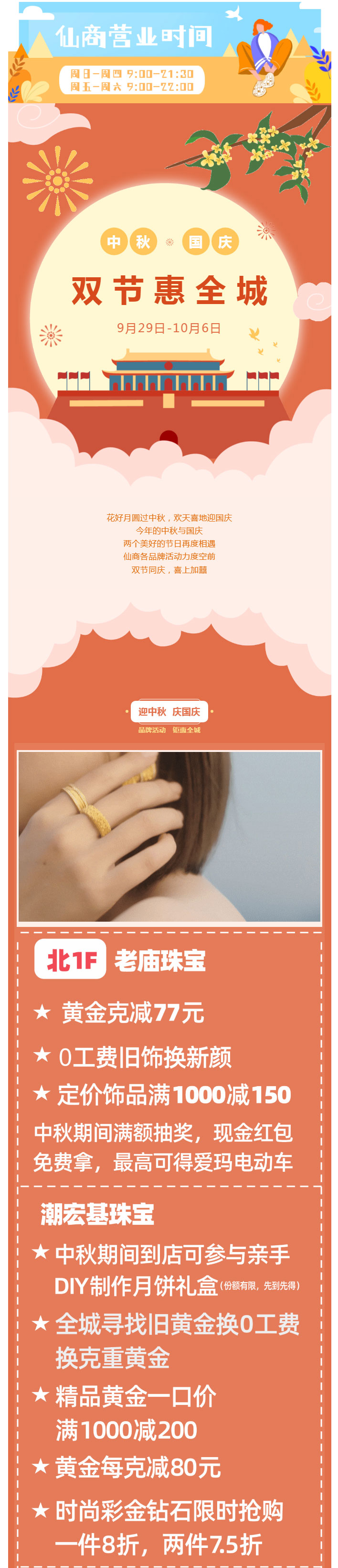 欢乐逛仙商 双节惠全城黄金克减80元,0工费以旧换新,还有超多重磅福利限时来袭!