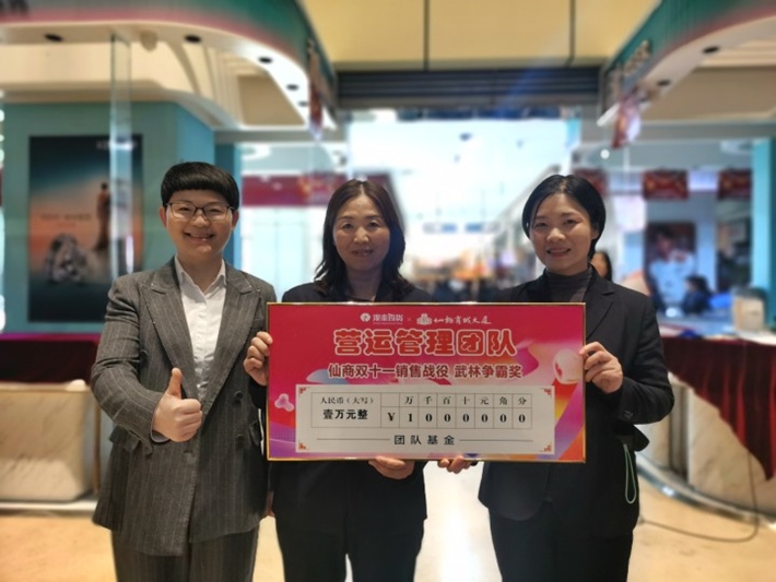 武林争霸PK赛仙商克服对手门店获得奖金1万元, 刘总为营运团队颁奖。