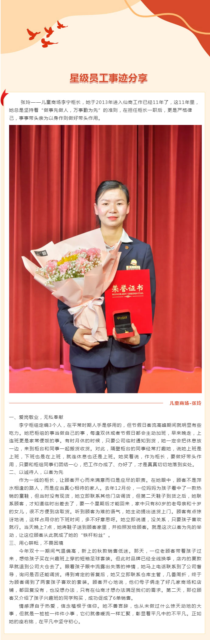 仙商第十八批星级员工事迹分享——暖心折务 传递快乐