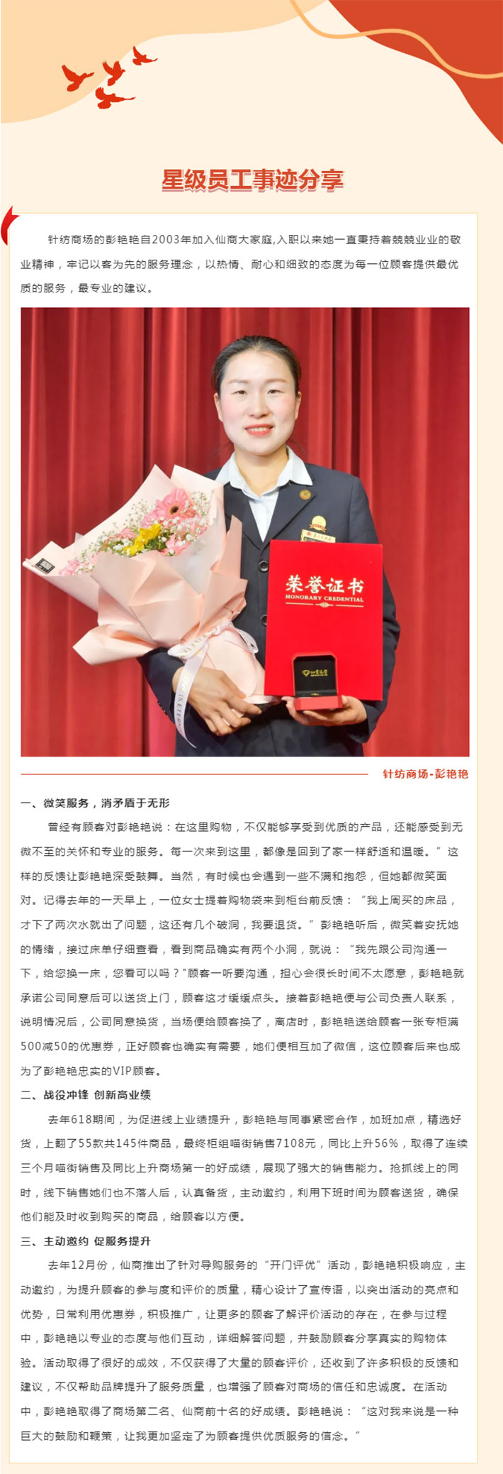 仙商第十八批星级员工事迹分享——以心相待,永葆活力