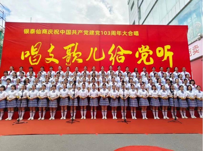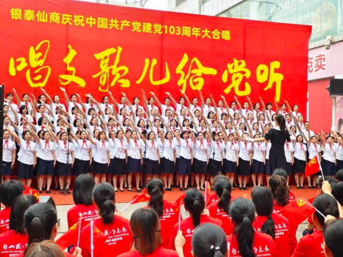 6月初,银泰仙商下发开展歌咏比赛关照,各代表队积极相应,精心部署,在保证日常工作正常开展的同时,积极组织排练。全体职工用别样的体例表达了对党的生日的美好祝福和对祖国的无穷热爱。