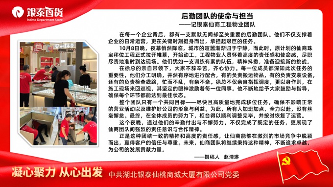立足岗位无私奉献 一记银泰仙商党员胡文