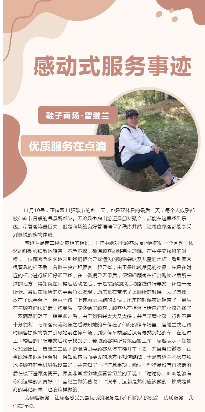 以朴拙之心待人,以责任之心做事仙商感动式服务事迹