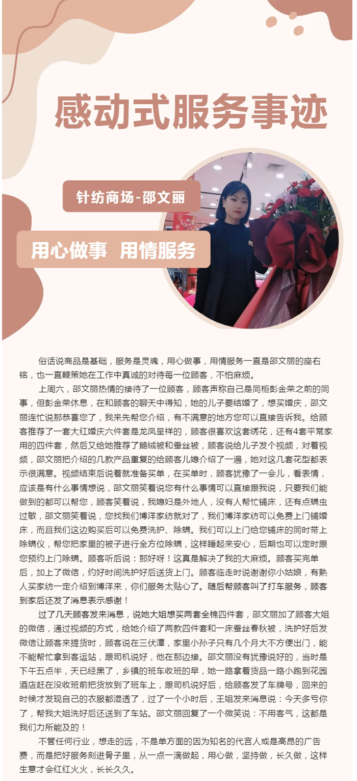 优质服务在点滴仙商感动式服务事迹