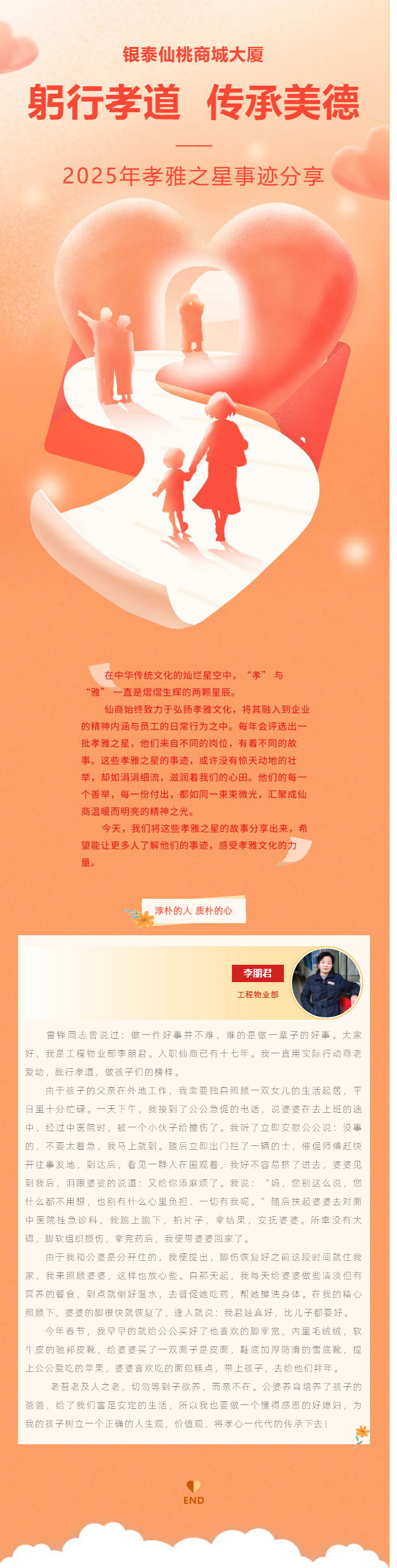 仙商2025年孝雅之星事迹分享——李*君淳朴的人 淳厚的心