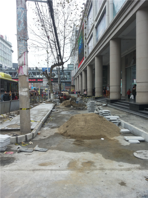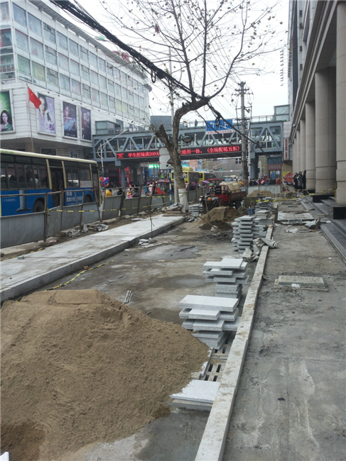 2016年元月1日南楼大门处公交港湾开始铺地砖