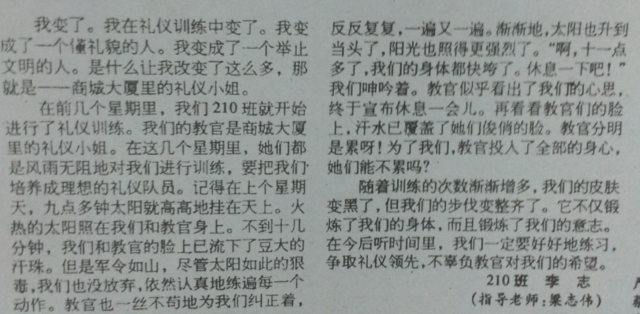 2000年4月25日,李志《礼仪训练使我变了》文章节选。