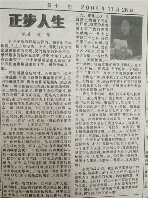 2004年11月28日,第一二批礼仪队员赵伟在退役上的演讲