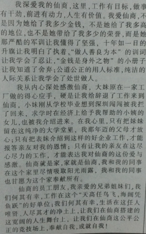 2006年5月28日,仙商举办电视直播演讲,图为政工部陈静的演讲节选