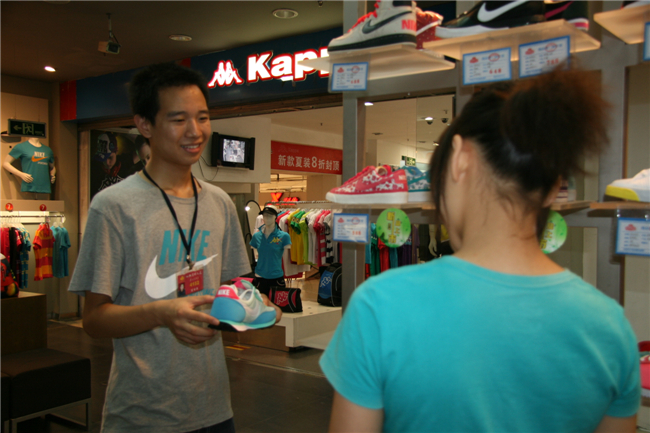东方神主营活动健身器材,由于这里的健身器材形体大,所以仙商专程为顾客免费送货与安装。6月中旬,一位男士前来购买跑步机,正巧柜台上的男员工去参加军训了,耐克360厅的柜长王政协助接待了这位顾客:“您好,迎接光临,请问您必要什么样的器材。”男士指着一旁的跑步机说:“我想买一台跑步机,可以试一下么?”王政微笑着说:“您稍等一下。”待接好电源,做好相干预备工作后,就帮着顾客试机,并逐一回答着顾客关于跑步机的相干题目,待顾客试机完付款后,他登记了顾客的地址与联系体例,行使放工时间协助去送货、安装。由于他自动热情的接待与送货,令这位男士很感动,并帮他买烟、买水,他笑着说:“不用了,这是我们应该做的。”他就是如许一个自动热心的人。期间商场各柜组大批量到货,他总是二话不说,自动协助搬货,从不说一句怨言。