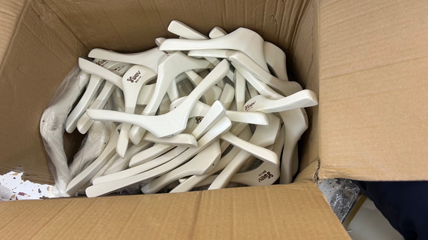 11月20日,正值儿童商场新品牌“婴为儿女”开业筹备关键阶段,品牌相关物资陆续到位,其中含20箱共3000个新衣架、裤架。