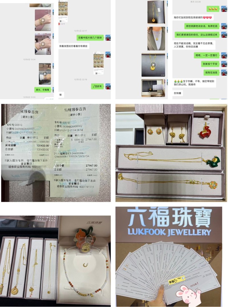 11月25日,仙商黄金商场六福柜长符艳通过小红书分享的手串视频,吸引了外地顾客主动询问并添加微信。符艳迅速回应,细致介绍商场品牌与位置,逐步建立信任关系。面对顾客对商品细节和佩戴效果的需求,她不仅及时拍照、录制视频,还积极协调跨区域调货,全力满足顾客期待。