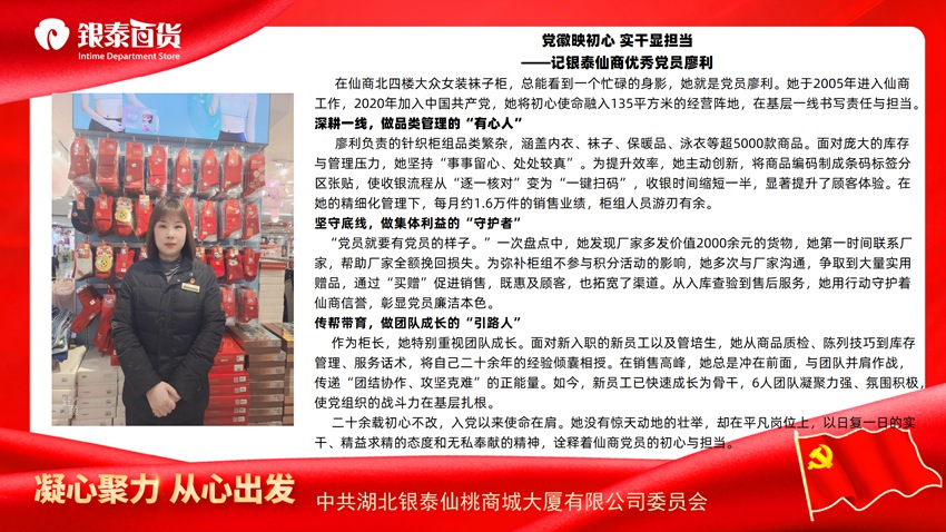 党徽映初心实干显担当--记银泰仙商优秀党员廖利