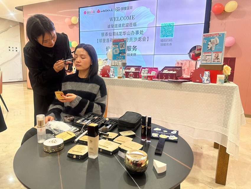 活动现场精心设置多重惊喜环节,免费手膜体验让大家舒缓双手、放松身心;专业护肤知识讲解干货满满,为日常护肤答疑解惑;更有毛戈平美妆课程重磅登场,专业讲师倾囊相授美妆技巧。不少参与者现场体验护肤流程,在亲身体验中感受品质服务,现场欢声笑语不断,邻里情谊在互动中持续升温。