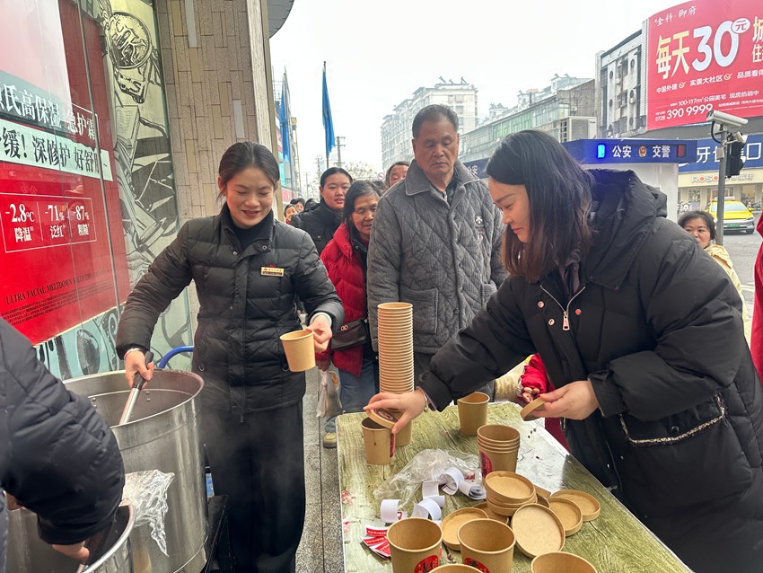 1月25日腊八佳节,仙商于北一楼大门口开展免费腊八粥发放活动,一碗碗热气腾腾的腊八粥,为市民送上冬日里的温暖与节日的美好祝福。同时,仙商心系一线工作者,专程为交警送去暖心粥品,以实际行动传递企业温情与社会担当,让腊八的暖意浸润城市街头。
