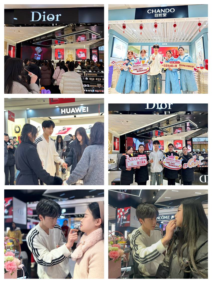 今日,仙商北一楼化妆区人气沸腾,抖音人气博主超人黄作为“一日店长”惊喜空降,现身迪奥、兰蔻、自然堂、科颜氏等美妆专柜,开启一场沉浸式美妆派对。