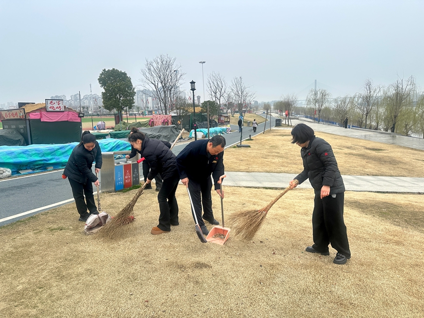 歌咏会落幕,公益行动接续发力、温情延续。10名志愿者带着扫把、垃圾袋等清洁工具,迅速奔赴江滩公园,开展环境清洁志愿服务。志愿者们热情高涨、分工协作,弯腰捡拾路面杂物、清理绿化带内垃圾,细致清理每一处卫生死角,不放过一片纸屑、一个烟头。