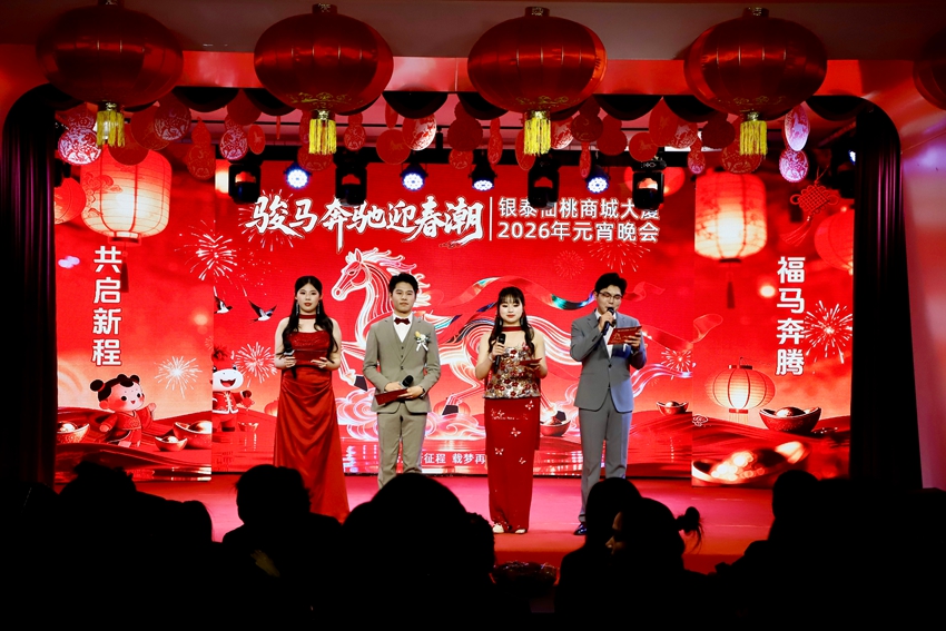 灯火映团圆,欢歌庆元宵。3 月 2 日晚,银泰仙商 2026 “骏马奔腾迎春潮” 元宵晚会温情启幕。银泰商业第九战区总经理董冰乐、各兄弟门店店总与仙商员工欢聚一堂,共庆佳节、共叙情谊。
