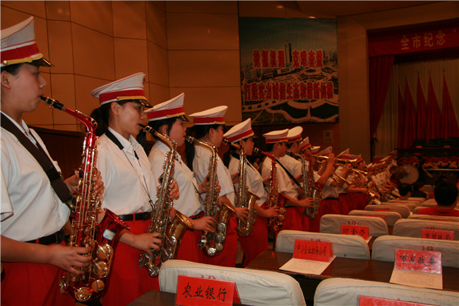 2011年4月29日,仙商管乐队员在劳动模范赞誉大会上担任司仪