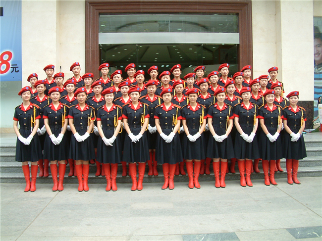 2004年9月7日,第六批礼仪队员合影。四排:黄喻、鲁艳、张英、余毅、张红、赵丽、康芬、聂莎、张妮、胡景红;三排:李宁、汤利文、彭文娟、杜欢、曾艳、李文婷、赵文琴、许青、吴优、鲁芬;二排:花凤、梁慧、汤敏、雷芳、李艳、刘琴、丁艳荣、杨赵云、周嫒嫒、罗露;前排:潘小梅、谢庆、尹维、赵梦玲、刘利敏、陈平、施丽、徐曼、鲁庆、陈文娟、鲁琴。