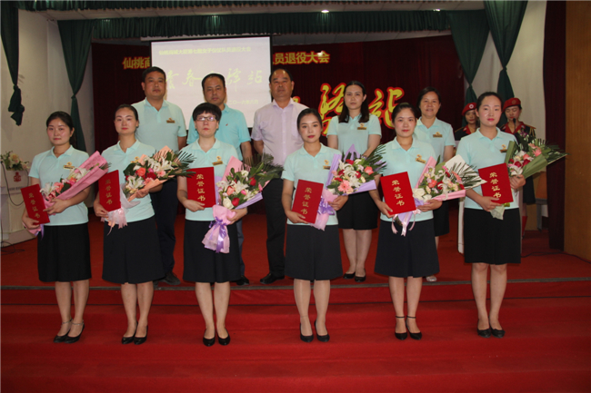 退役礼仪队员(从左):杨淑荣、郭静、邓青新、黄玉婷、欧阳倩、王娟